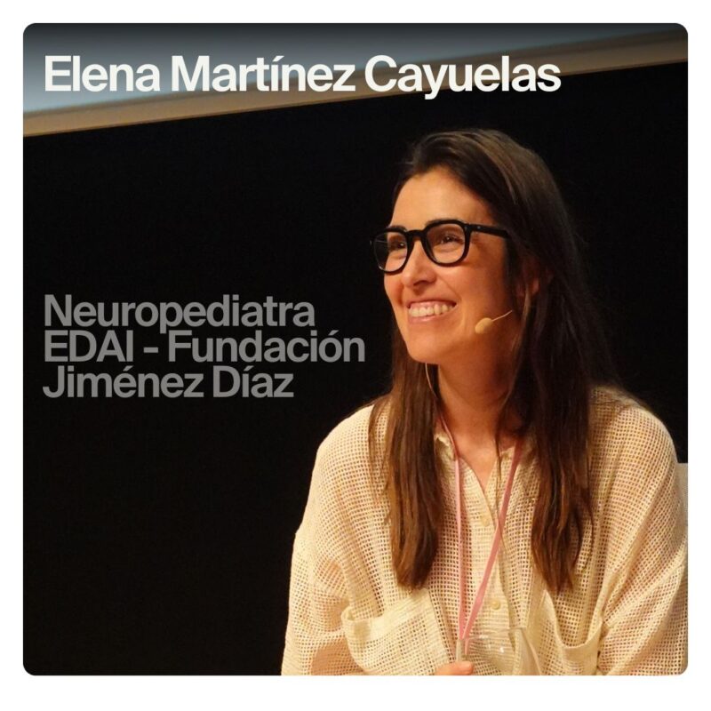 La Dra. Elena Martínez Cayuelas es Neuropediatra en el Hospital Universitario Fundación Jiménez Díaz. Máster en Trastornos del espectro autista y máster en “Sueño: Fisiología y Medicina”. Doctora por la Universidad autónoma de Madrid, con la tesis “Sueño, melatonina y ritmos circadianos en población pediátrica con trastorno del espectro autista”. En los últimos años ha centrado su investigación en sueño y ritmos circadianos en diferentes poblaciones de pacientes pediátricos con patología neurológica, o condiciones del neurodesarrollo. Desde hace unos meses, neuropediatra en EDAI Madrid. Forma parte de la Sociedad española de Sueño y de la Sociedad Española de neuropediatría.
